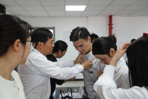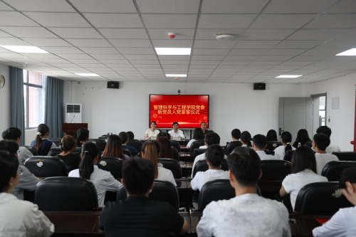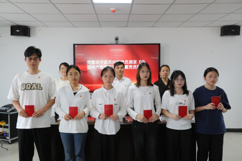 仪式在庄严的中华人民共和国国歌中拉开帷幕。党委副书记傅璟宣读党委关于接收新党员的批复文件后,党委班子成员为新党员颁发《中国共产党章程》并佩戴党员徽章。