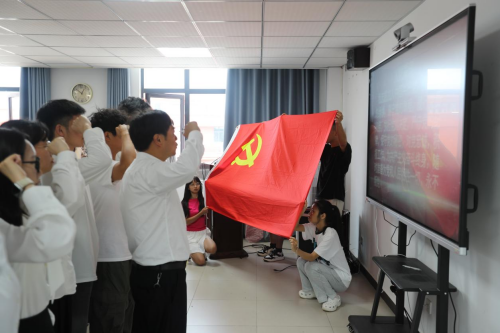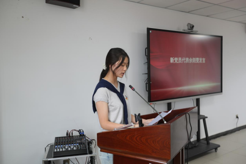 新党员代表余刚雯发言时表示,将以宣誓为新起点,在学习生活中践行党员使命,以实际行动回报党组织培养。参加今天的宣誓仪式,自己将终生铭记,自今天开启了人生的新征程,会倍加珍惜自己的政治生命,始终牢记党的宗旨和使命,不断提高自身素质和能力,提高参与社会建设的能力;做一名合格党员,用优异的成绩向党组织汇报,决不辜负党组织的培养。