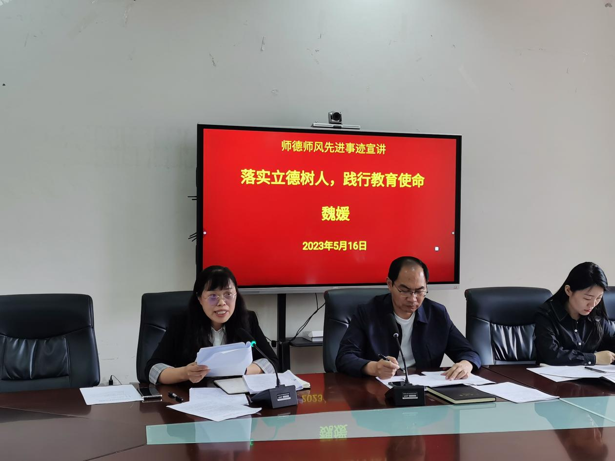 接下来副院长魏媛作师德先进事迹宣讲。作为贵州省巾帼建功标兵、贵州财经大学“四有”好老师、“三八红旗手”、优秀教师、教书育人楷模,魏媛向全院教职工分享了她的先进事迹和工作经验,并引导教职工以德立身、以德立学、以德施教。