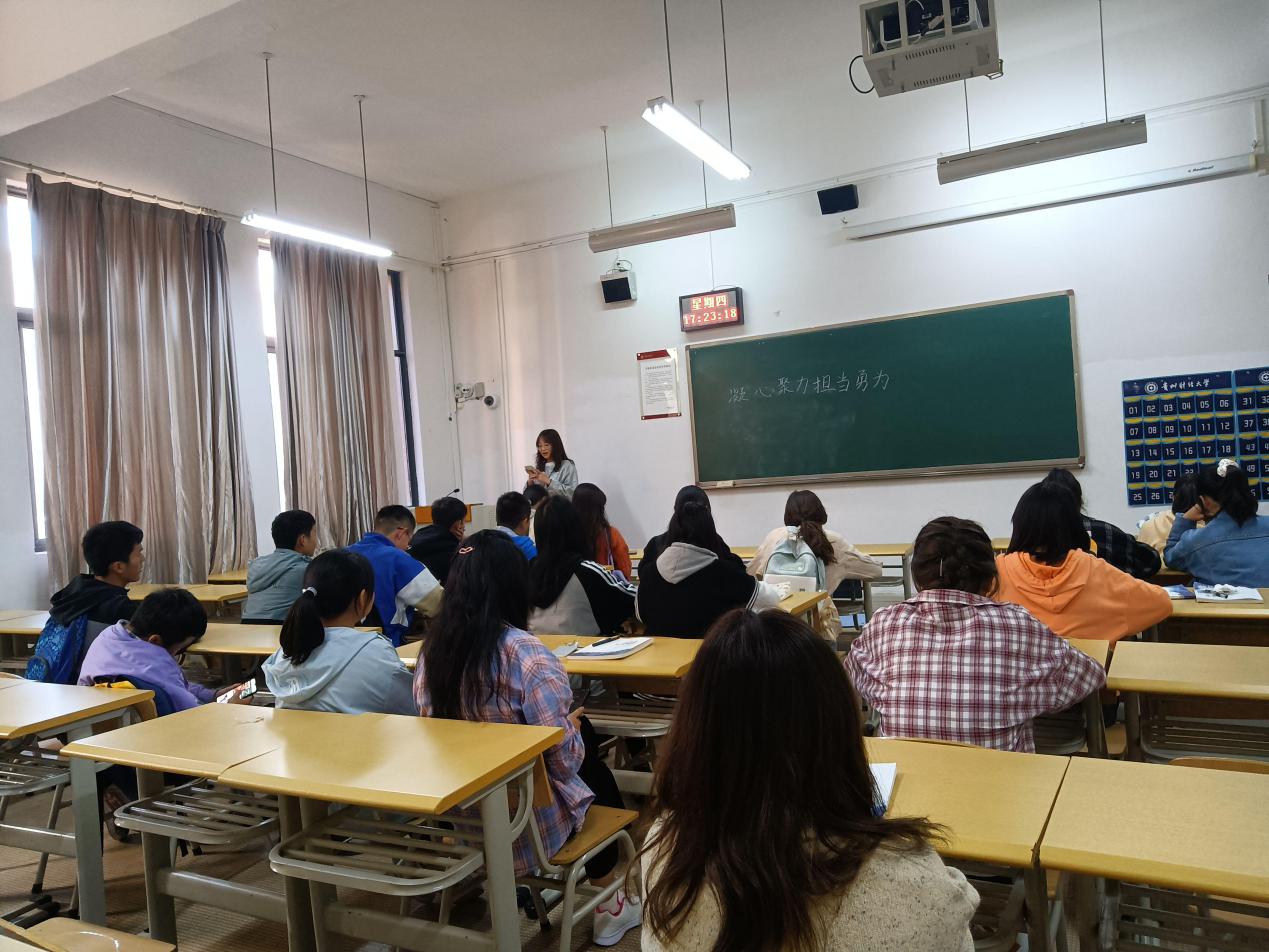 首先由团支书介绍到大会审查批准了学校纪委工作报告。大会认为,在上级纪委和学校党委的坚强领导下,学校纪委认真履行党章赋予的职责,深入贯彻党的十八大、十九大精神,全面落实中央纪委和省纪委历次全会精神,持续强化党风廉政建设和反腐败斗争,有效提升纪检监察工作质量,为统筹推进学校第一次党代会提出的战略目标提供了坚强的政治保障和纪律保障。紧接着同学们发表自己对学校的发展历程以及自己以后的规划和目标,裴永叮同学发表了自己的讲话:“有那么一粒种子,在我年少时种下,希望在生命中的某一天收获丰硕的果实,希望在我启程去往人生新旅途中给我指引家的方向。在我踏进贵财的那一步开始,我的梦就从此开启了崭新的篇章。