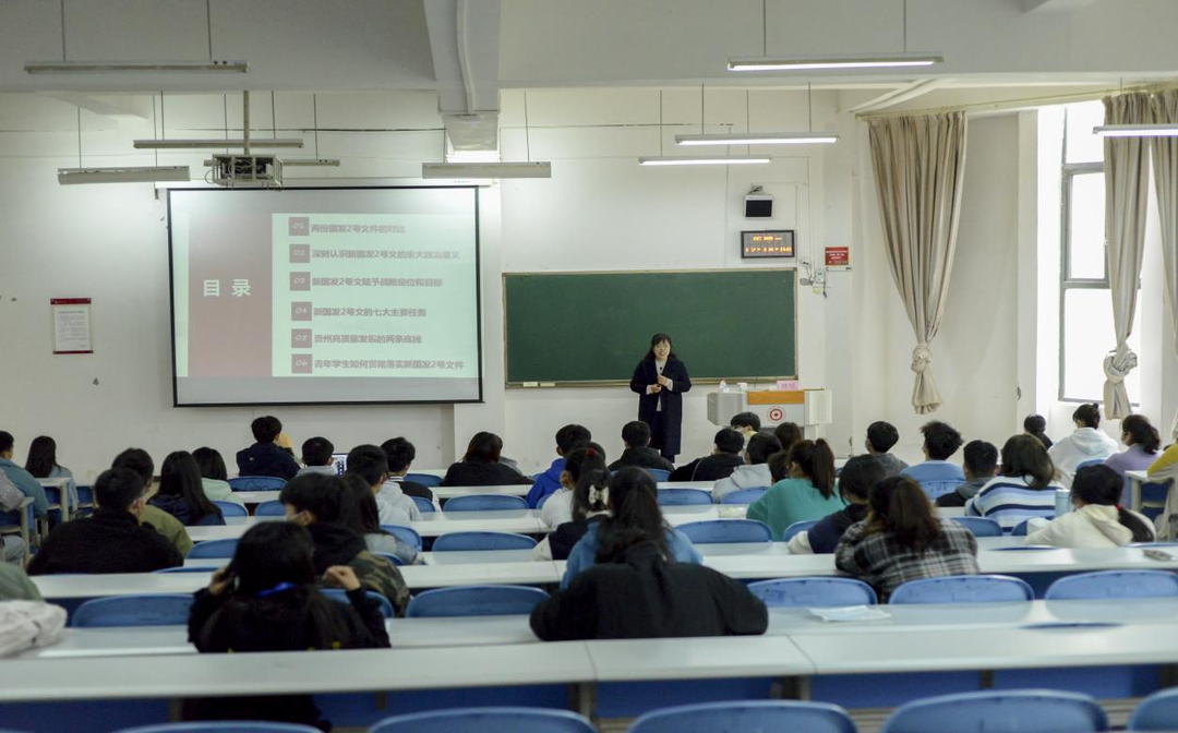 培训班上,魏媛详细地解读了新国发2号文件,并就新国发2号文件的重大历史意义、新国发2号文件赋予我省‘四区一高地’的战略定位、新国发2号文件的七大主要任务、贵州高质量发展的两条底线以及青年学生如何贯彻落实新国发2号文件等六个方面进行深入浅出的讲述。她提到,新国发2号文件对贵州未来发展具有十分重大而深远的意义,也为新时代的青年大学生提供了更多的发展机会和平台。