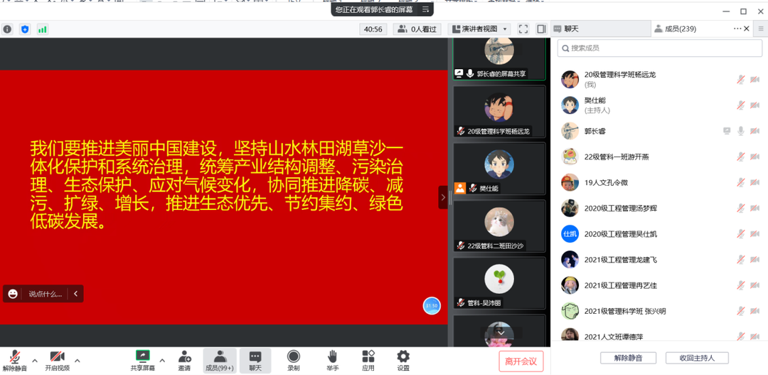 郭长睿向同学们介绍了共青团100年来的使命,同时联系当下讲到新时代团员青年的时代担当,勉励青年团员们要有新时代青年的朝气和抱负,向着未来进发。郭长睿就习近平总书记在二十大报告中提出的“推动绿色发展,促进人与自然和谐共生”这部分内容,联系管科玩游戏赚钱