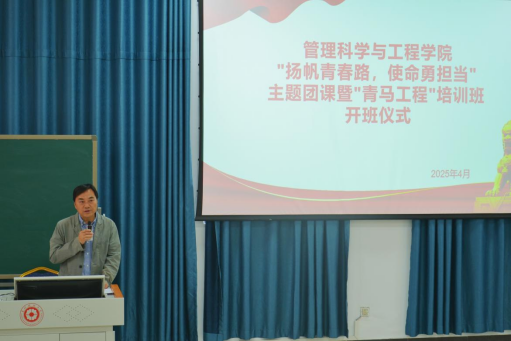 党委书记胡张林致辞。胡张林强调,“青马工程”培训班的核心目标在于培育一批政治信仰坚定、综合能力突出、作风素养过硬的新时代青年马克思主义者,为中国特色社会主义事业输送合格建设者和可靠接班人,同学们要通过参加此次培训班:一、夯实思想根基,强化政治理论学习深度,提升政策理论水平;二、锤炼实践本领,培育创新思维,提高组织协调能力和实践能力;三、发挥示范效应,主动引领青年群体,在服务国家发展战略中彰显青春担当。