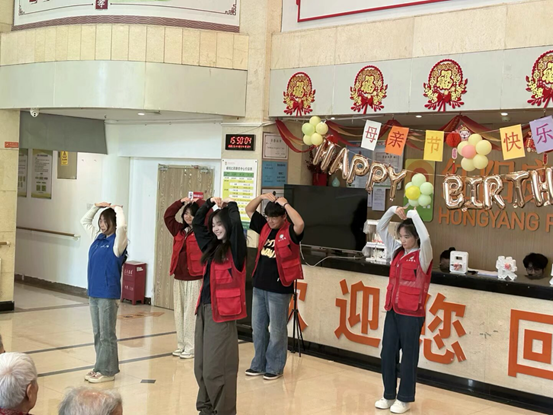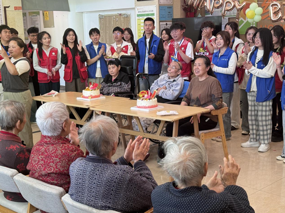 活动特别设置集体庆生环节,志愿者与全体长者共同为三位五月寿星庆贺生辰。烛光摇曳映照着寿星的笑靥,青年学子们为长者戴上缀满祝福的寿星帽,送上手写贺卡,将切分好的蛋糕送至每位老人手中。活动结束后,志愿者们细心搀扶行动不便的长者返回居室,并协助工作人员整理活动现场。