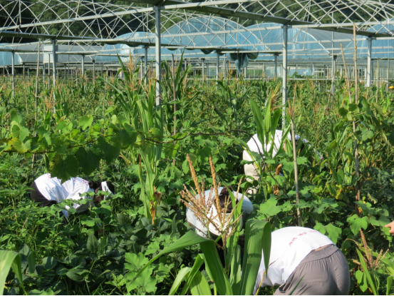 讲解结束,三下乡成员迅速分组开展劳作,有的同学蹲下身子用手拔除贴近作物的杂草,有的同学借助镰刀清理高大杂草,有的同学则用铲子集中搬运清理出的杂草堆。活动过程中,针对如何高效清理根系发达的杂草等问题,三下乡全体成员在实践中进行了交流学习,提高了工作效率;虽头顶烈日,但各位成员干劲十足。在大家的通力协作下,原本杂草蔓生的林下区域焕然一新,通风透光条件改善,为作物生长腾出更充足空间,同时也为后续田间管理奠定了更可靠的基础。