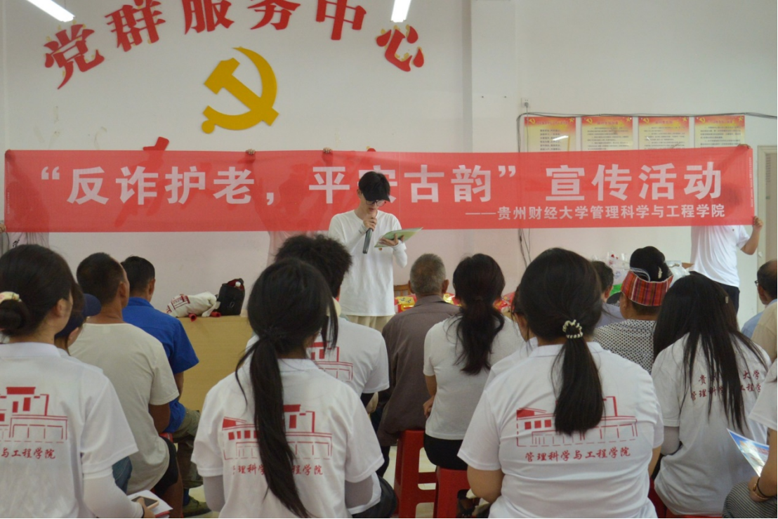 “承光前行,振乡共契”乡村振兴实践团在台江县良田村开展了主题为“反诈护老,平安古韵”的宣传活动。