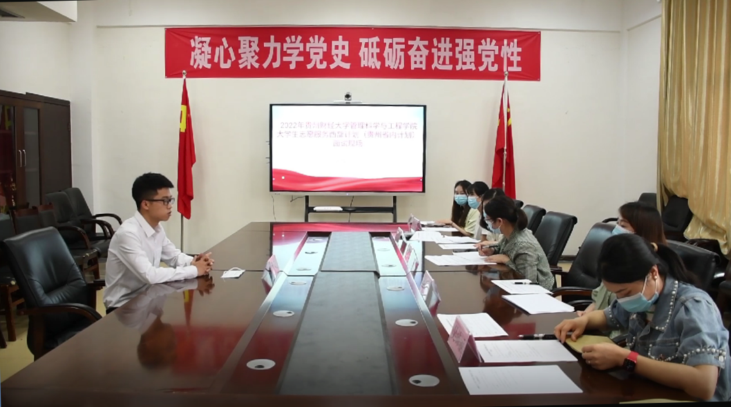 2022“西部计划”志愿者面试工作在正德楼413会议室举行。院党委副书记王茜、院学生科负责人李炳芳、院18级辅导员赵本琴担任此次面试会评委,院团委老师吴沛丽作为此次面试会主持人。