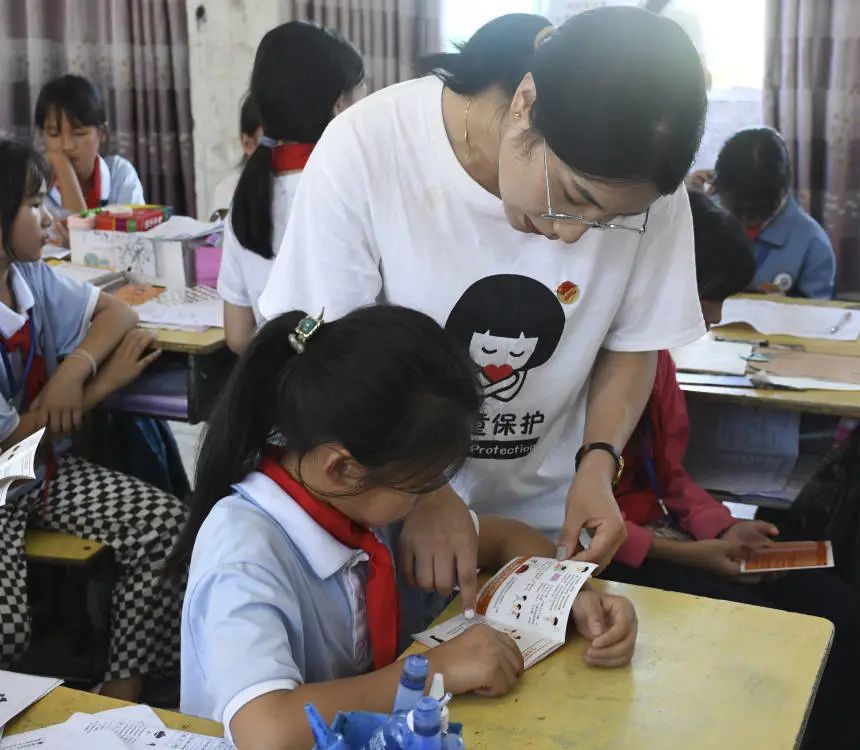 讲座中,“女童保护”志愿者讲师以理论讲解、互动答疑、情境表演等方式,从如何爱护身体、分辨性侵害、防范性侵害以及遭遇性侵害后如何保护自己等多方面,深入浅出地为同学们作了讲解,给正在成长的儿童们上了一堂生动而又有意义的一课。同学们们跟着老师的思路从认识身体、分辨哪些触摸是性侵行为到如何防范性侵害逐步学习。课后,学生志愿者们还为每位学生发放了防性侵手册。