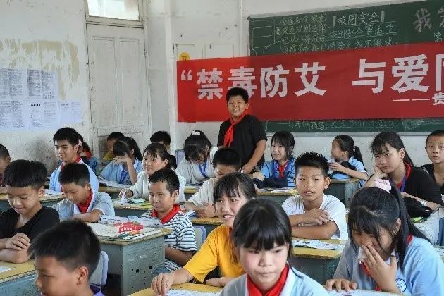 “青春不‘毒’行·红丝带飘扬”暑期“三下乡”社会实践团走进台江县施洞镇小学,开展“禁毒防艾,与爱同行”知识进课堂宣传活动。
