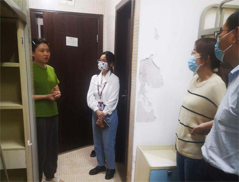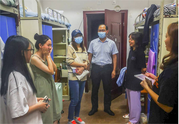 “同学们有什么困难没有?”“一切都调整过来了吗?”“网课学习大家是否都能熟练?”······深入聊天中,王茜与同学们进行了亲切的交流,交流进入新环境所遇到的问题,热切地关心同学们是否能够习惯新学校。在走访过程中遇到问题及时为同学们解决,便于新同学更好的适应新的居住环境。细心询问同学们各方面的需求,了解同学们的诉求,以及线上学习和疫情生活中遇到的困难,希望同学们能够以良好的精神面貌投入到未来的学习中,并着重嘱咐同学们疫情期间严格遵守学校疫情防控要求。
