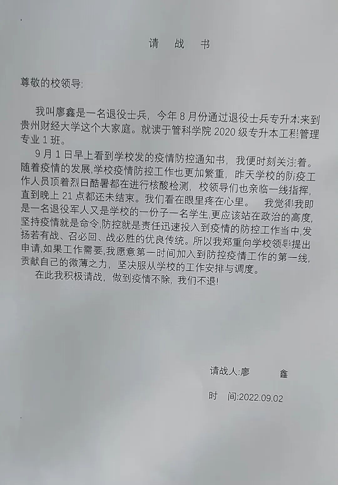 请战抗疫。
