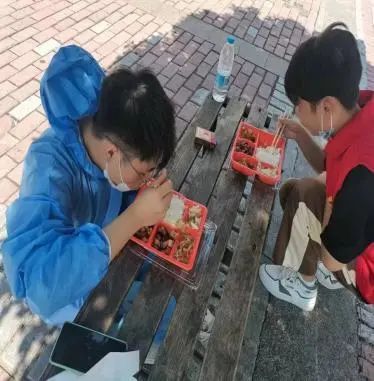 的号召下,我也积极地加入到了志愿者的队伍中。第一天的工作便是协助丹桂苑二栋楼下的采样点位进行核酸检测,负责疏导人流、维持秩序。后因防护服数量不够,停滞了几天工作,现被安排参与夜间到校物资在二食堂分卸的任务。志愿工作是十分辛苦的,但也是十分光荣和难忘的,在岗位上没有志愿者发出的抱怨声,而只有默默付出、埋头苦干的背影。我永远也忘不了在凌晨结束核酸检测后,志愿者们脸上露出的轻松的笑靥,那是照亮夜间道路的明灯,传递给每个人我们必胜的信念。