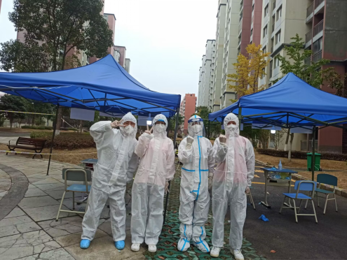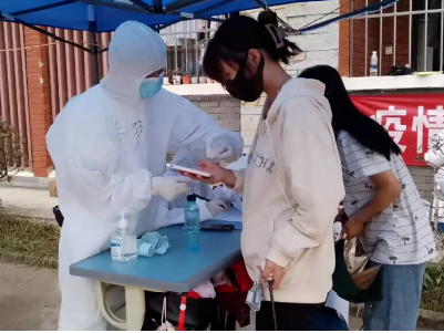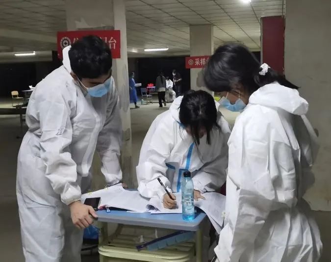 2020级农村区域发展班,志愿防疫期间在学生宿舍玉兰苑1栋负责协助医务人员完成核酸和抗原检测工作。刘丽君同学表示在志愿服务过程中最让她影响深刻的是:总是与医务人员一起奋战到凌晨五六点,虽然很累但能为疫情防控贡献自己的力量是一件很有意义的事。