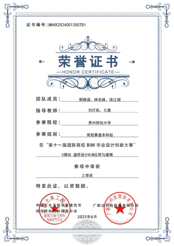 刘灯凯和兰晨老师指导的郭晓涵、林安妹、徐江湖团队获奖证书