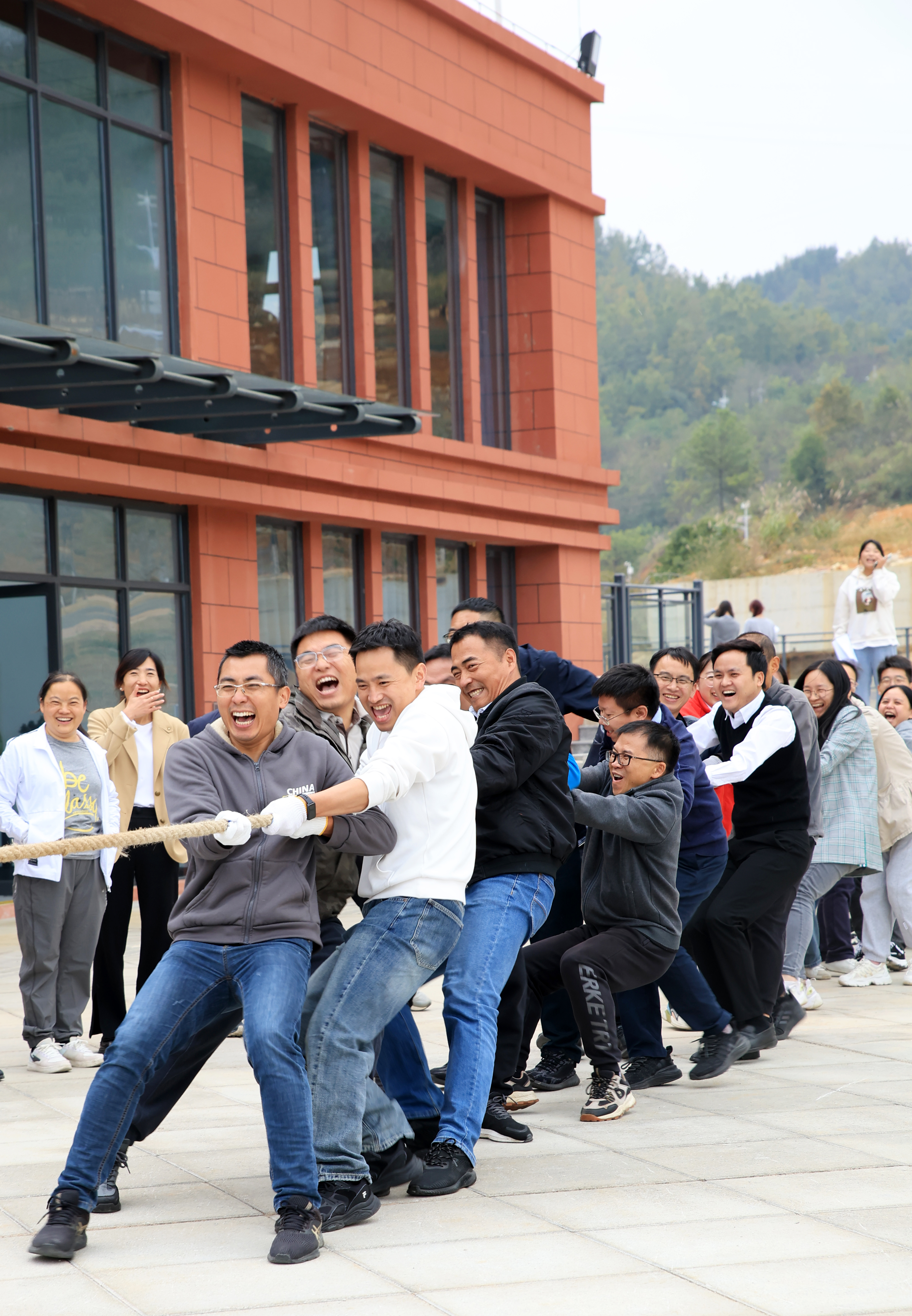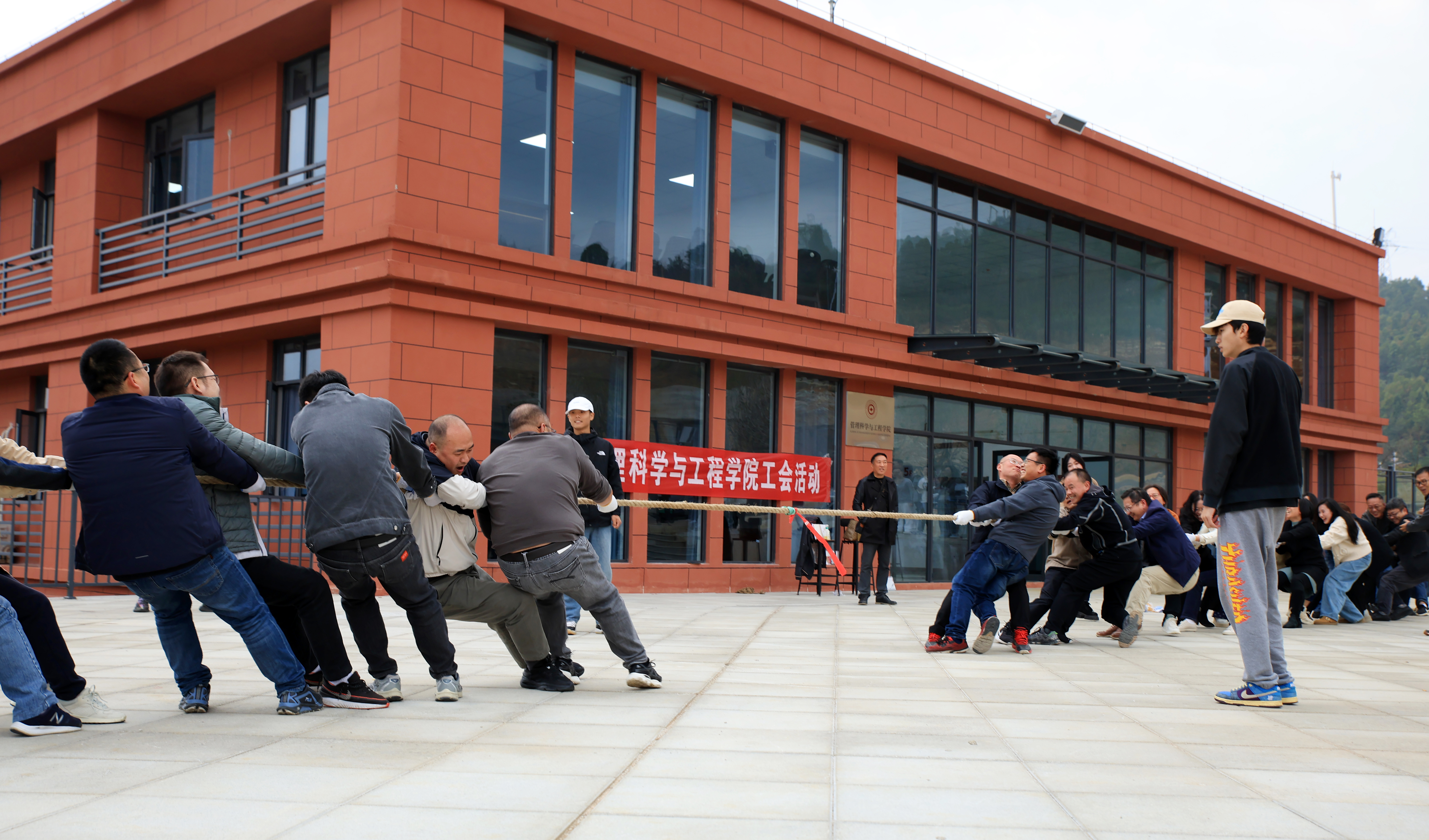 各系代表队都显示出最强的比赛阵容,齐心协力,勇争第一!当比赛的哨声响起,只见参赛的队员们紧握长绳,卯足了劲拼命往后拉。各系师生也在队伍旁边助阵,未参赛的师生自发组成啦啦队为比赛队员呐喊加油,哨子声、呐喊声此起彼伏,现场激烈的比赛将整个活动推到了高潮!