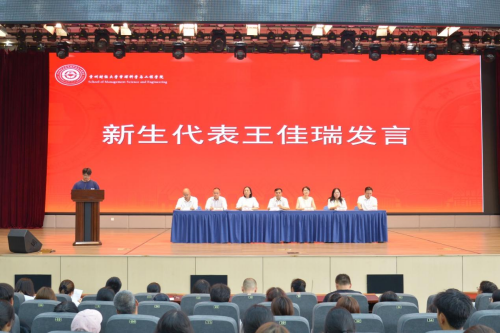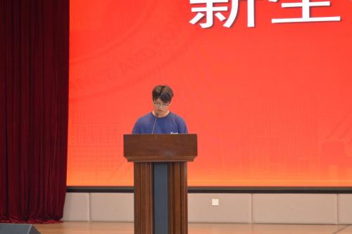 新生代表王佳瑞在发言中分享了初入校园的激动与憧憬。他表示将传承学校优良学风,以饱满的热情投入学习与生活,与同学们携手并肩,在挑战中磨砺自我,努力成为有理想、有本领、有担当的新时代青年。