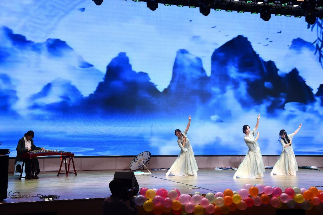 舞蹈《舞动青春》以刚劲有力的动作,诠释“少年强则国强”的豪情与“自强不息”的精神。