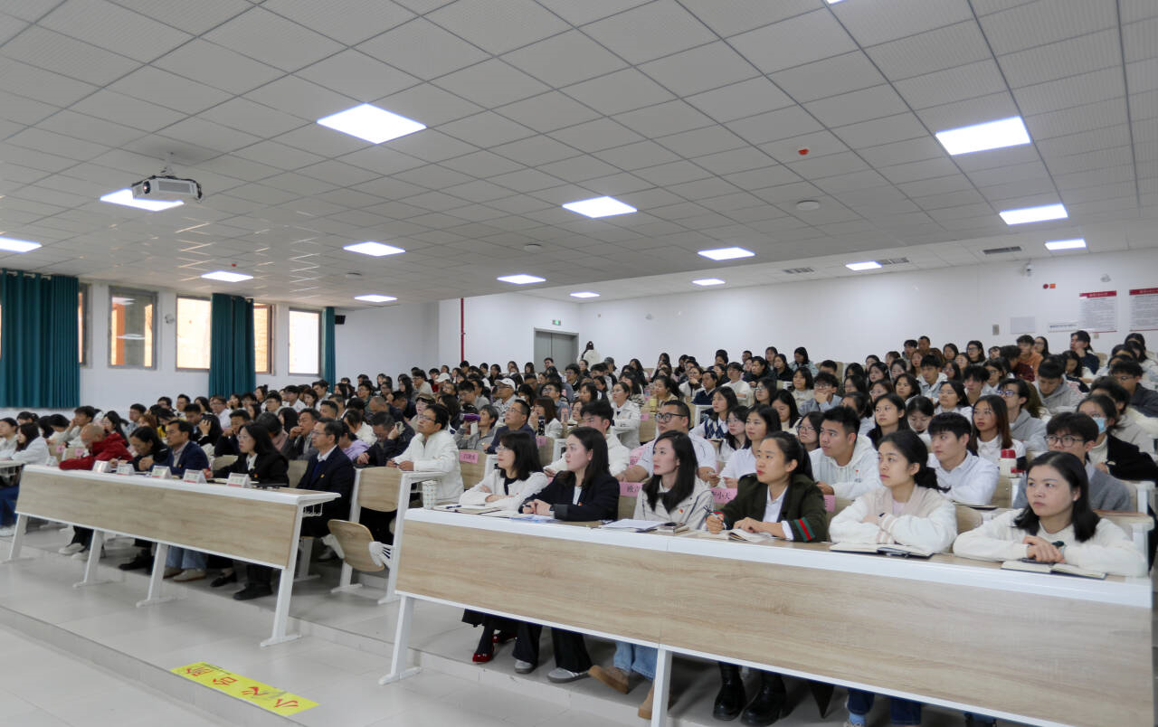党委书记胡张林面向全体师生党员、发展对象培训班学员开展学习《习近平谈治国理政》第五卷集中宣讲。