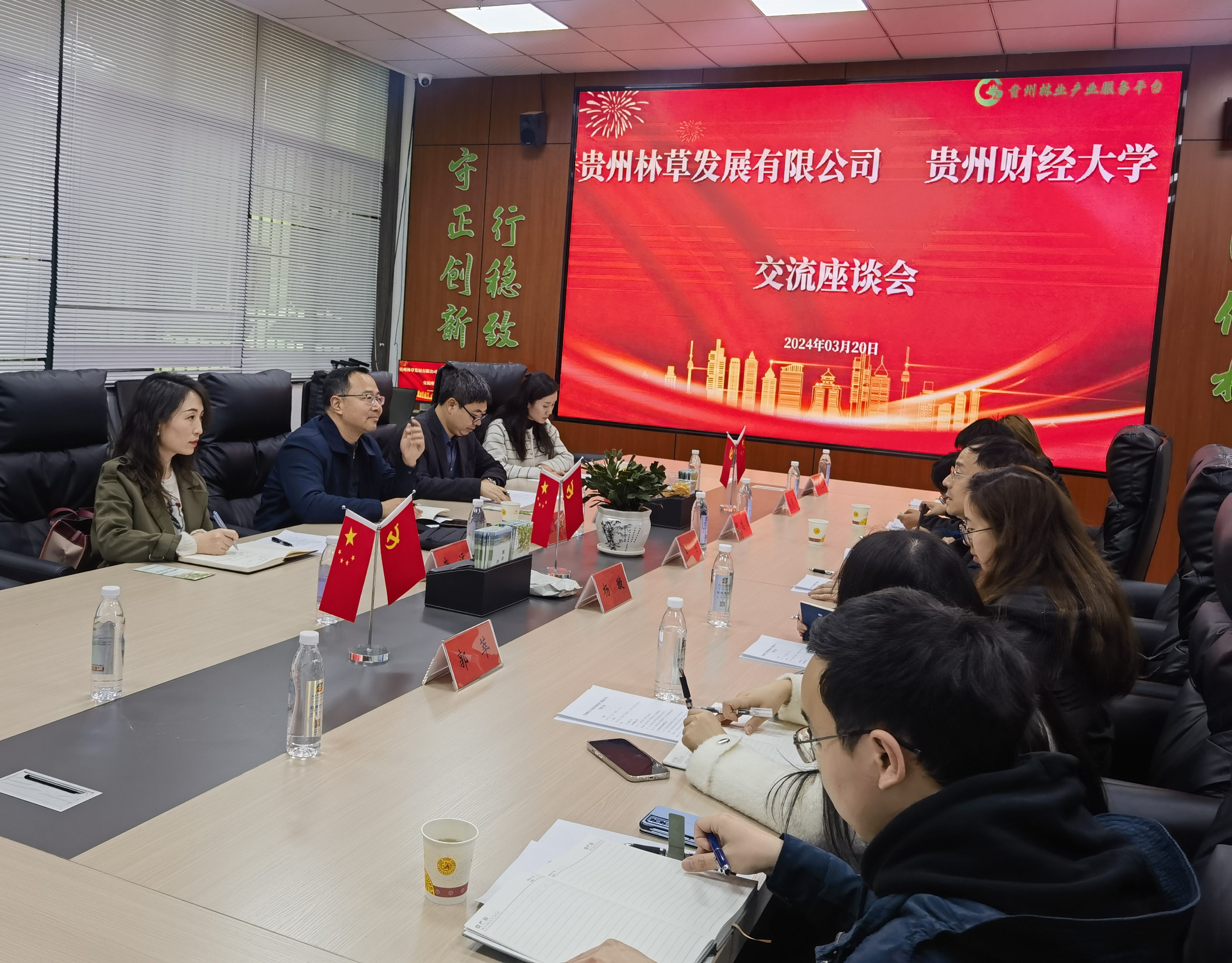 刘学首先对我校一行到访表示热烈欢迎,并详细介绍了贵州林业产业服务平台运营中心基本情况及平台建设情况。张军就学校研究生教育情况及校企融合相关工作进行介绍。贵州多彩宝互联网服务有限公司青创部总经理张晓龙也表示目前与人社厅正筹备为毕业生自主创业搭建新的平台。郭长睿院长对学生就业实习等岗位与对方进行了交流,并热情邀请林草公司回访。双方就共同开展学生培养、参加研究生院“奋进新时代·百企进校园”活动、学生实习就业拓岗以及校企共同开展“揭榜挂帅”项目攻关等内容达成良好合作意愿。