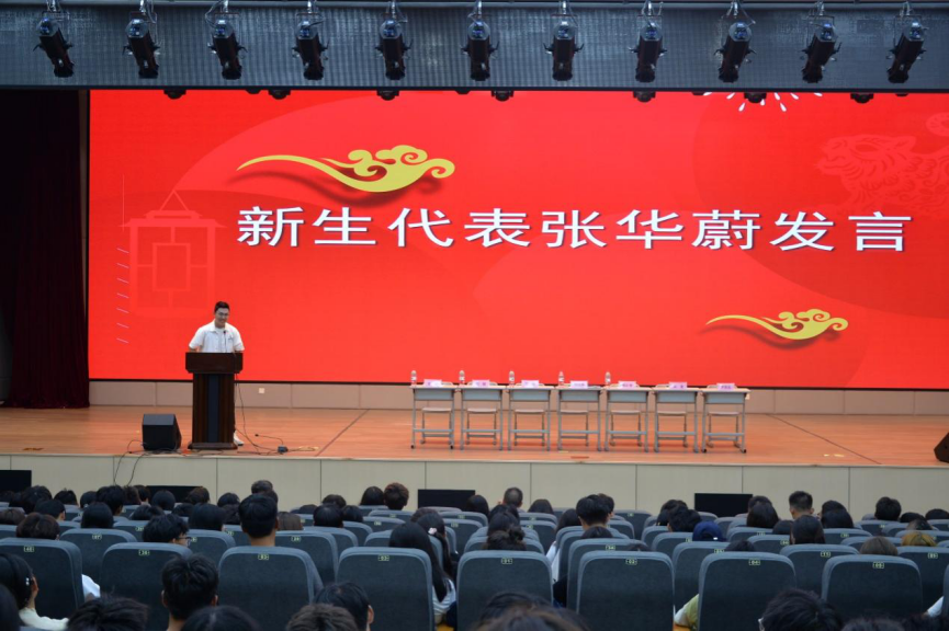 随后,教师代表张舟上台发言。他以自己的教学和研究经历为例,向新生们展示了学术探索的魅力和挑战,并勉励他们要保持好奇心和求知欲,不断探索未知领域。新生代表张华蔚也发表了感言。他表达了对大学生活的憧憬和期待,并表示将秉承校训精神,努力学习,积极参与社会实践,为玩游戏赚钱