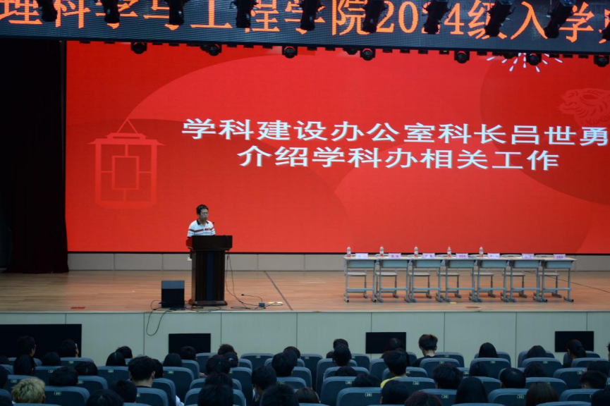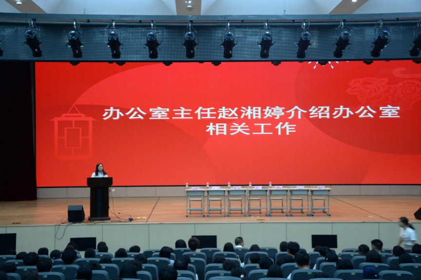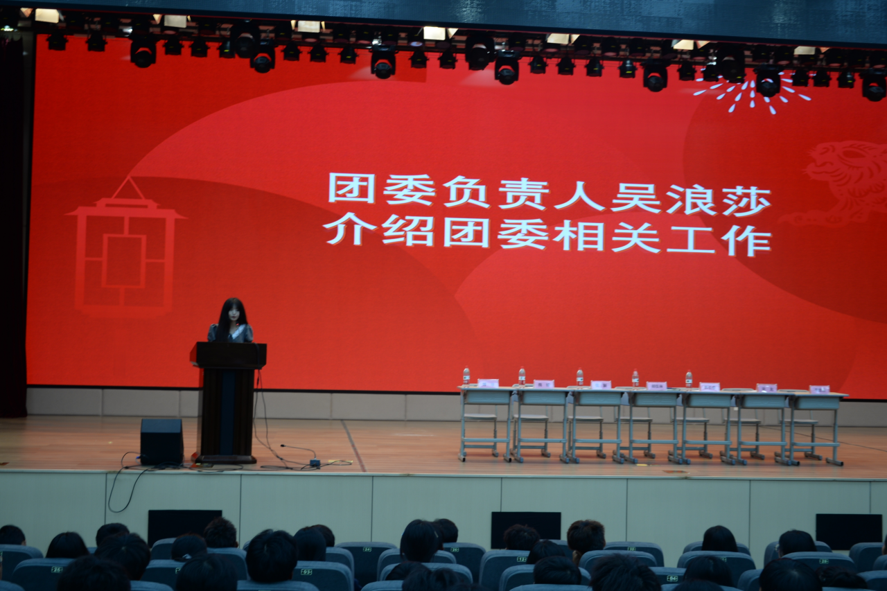 的学科发展规划;学生工作科副科长李炳芳介绍了学生工作的主要内容;团委负责人吴浪莎则向新生们介绍了团委的组织架构和即将开展的团学活动。