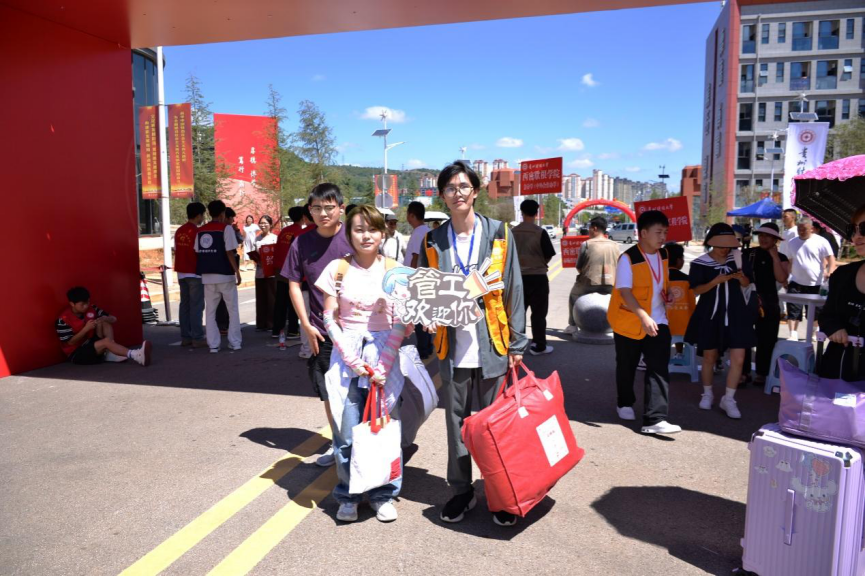 领导、老师、学生干部以及志愿者们纷纷投入到迎新工作中,他们以最饱满的热情和最贴心的服务迎接每一位新生的到来。从办理入学手续到搬运行李,从解答疑惑到指引方向,迎新工作者们始终面带微笑,耐心细致地为新生们提供帮助。尽管烈日炎炎,但他们的热情却丝毫未减,汗水浸湿了衣背,却也见证了他们无私的奉献与付出。