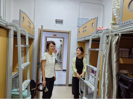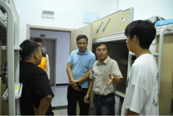 走访过程中,老师们逐一检查宿舍设施情况,细致询问宿舍入住中的实际问题,并对同学们提出建议认真记录、现场反馈,承诺尽快处理,全力保障学生住得安心、舒适。