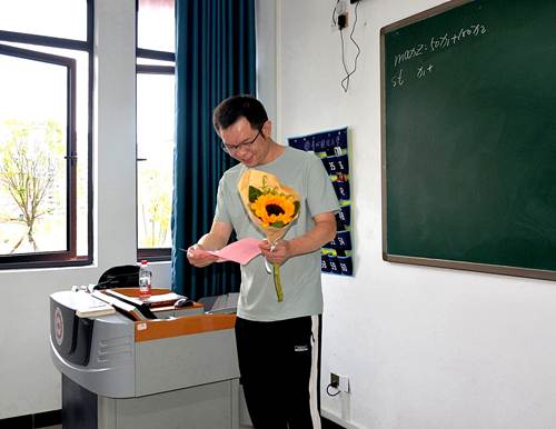 的学子们也以真挚而温暖的方式,向恩师们表达了心底深沉的感激。电梯口宣传屏播放着同学们的祝福视频,他们用心手工制作了一张张独一无二的祝福卡片,每一笔勾勒、每一色点缀,都凝结着满满的敬意与纯粹的爱;同学们自发地走向一间间教室与办公室,将盛开的鲜花与写满心意的卡片送到老师手中,伴随着一句句“老师,您辛苦了”;而当上课铃声响起,一个个班级整齐起立,向老师致以深深的鞠躬——那一刻,宁静却有力,温暖了课堂,也温柔了时光。